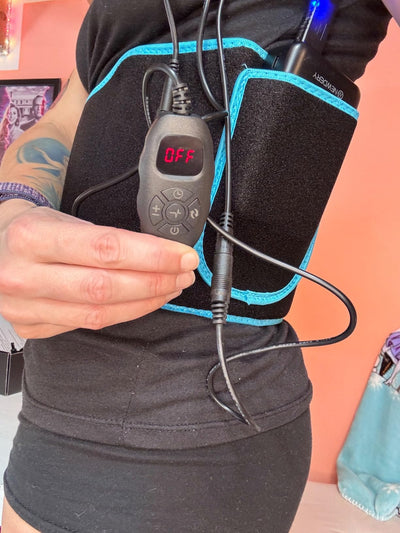 Der Nexora Belt passt sich per Klettverschluss jeder Körperstelle an und läuft kabellos über eine Powerbank oder ganz klassisch an der Steckdose.